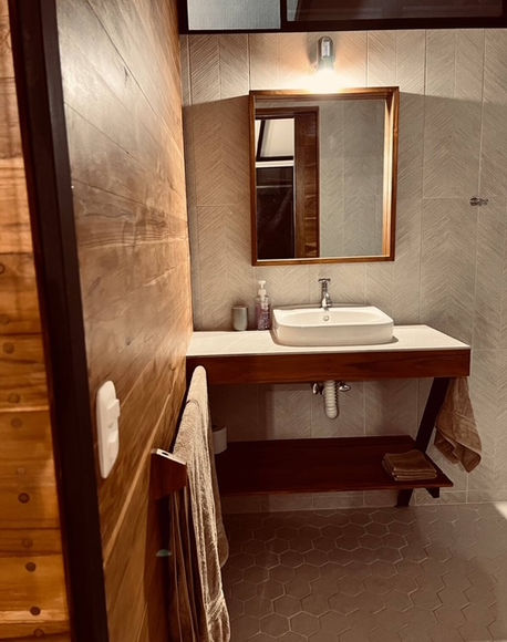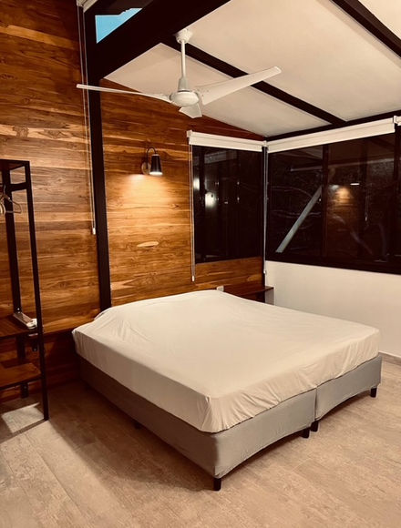 Eco style casitas have a ceiling fan, offer plenty of privacy and are elevated off the forest floor, surrounded by natural beauty, animals and stunning views. Each casita features comfortable box-spring beds that can be arranged as one queen or two singles. They are equipped with ceiling fans, balconies and private bathrooms. We also provide beach towels for your trips to the beach, along with drinking water and body wash.